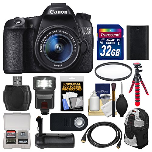 Canon EOS 70D Digital SLR Camera & EF-S 18-55mm IS STM Lens with 32GB Card + Backpack + Flash + Battery + Grip + Flex Tripod + Kit