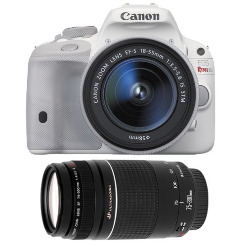 Canon EOS Rebel SL1 Digital SLR Camera & EF-S 18-55mm IS STM Lens (White) with Canon EF 75-300mm f/4-5.6 III Zoom Lens