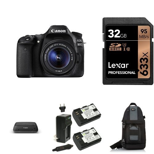 Canon EOS 80D Digital SLR Bundle with EF-S 18-55mm f/3.5-5.6 STM Lens, 32 GB Memory Card, Lowepro Bag, Connect Station CS100 (1TB Storage) and Extra Batteries