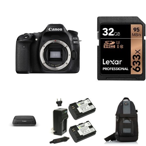 Canon EOS 80D Digital SLR Camera Bundle with 32 GB Memory Card, Lowepro Bag, Connect Station CS100 (1TB Storage) and Extra Batteries