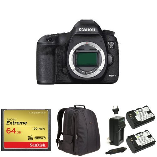 Canon EOS 5D Mark III 22.3 MP Full Frame CMOS with 1080p Full-HD Video Mode Digital SLR Camera (Body) + Memory Card, Bag and Battery