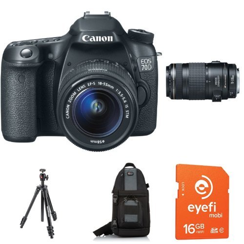 Canon EOS 70D with 18-55mm STM and 70-300mm USM Lenses + Eye-Fi Memory Card, Bag, Battery and Tripod