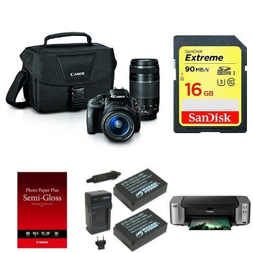 Canon EOS Rebel SL1 Digital SLR with 18-55mm STM + 75-300mm f/4-5.6 III Lens Bundle (Black) + PIMXA Pro 100 Printer, Photo Paper, Memory Card, Bag and Battery