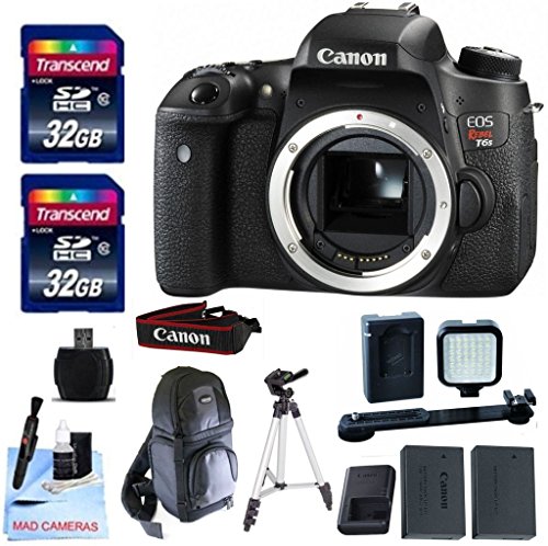 Canon EOS T6s Body Only + 2 32GB Transcend SD Memory Cards + LED Video Light + Spare LP E17 Battery + DSLR Sling Bag & More - International Version